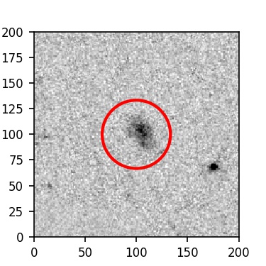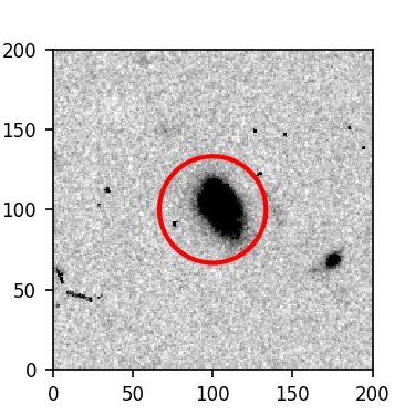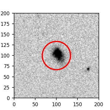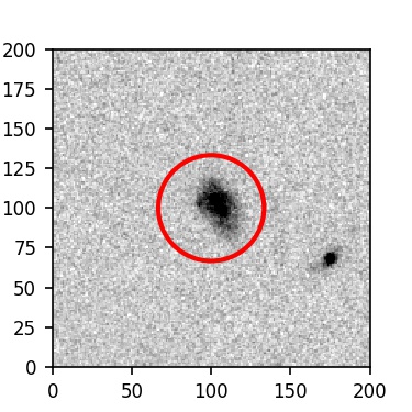 The red circle in the various panels is 1" in radius. The images are 6"x6".