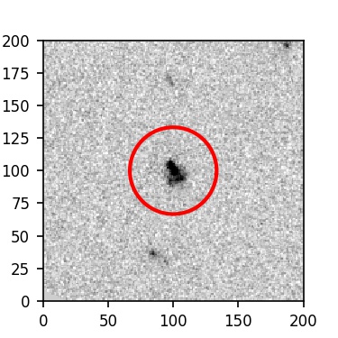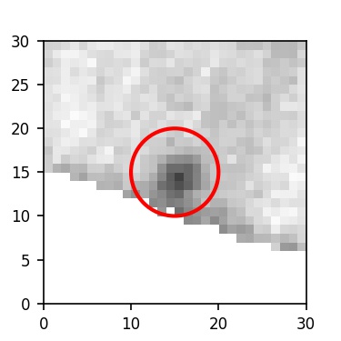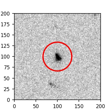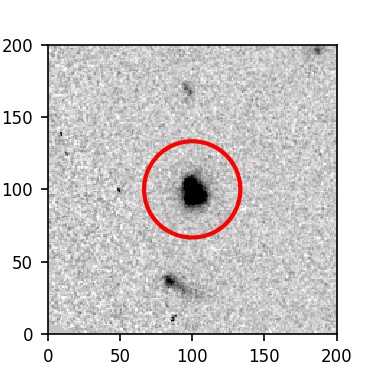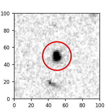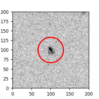 The red circle in the various panels is 1" in radius. The images are 6"x6".