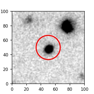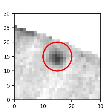 The red circle in the various panels is 1" in radius. The images are 6"x6".