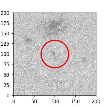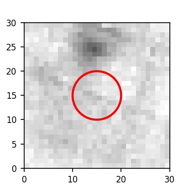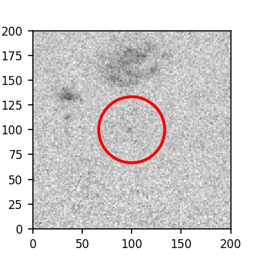 The red circle in the various panels is 1" in radius. The images are 6"x6".