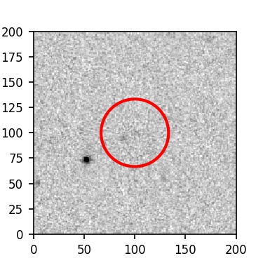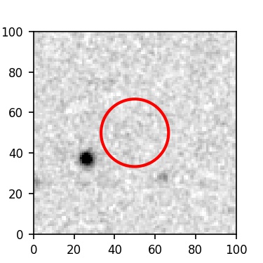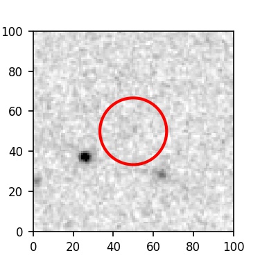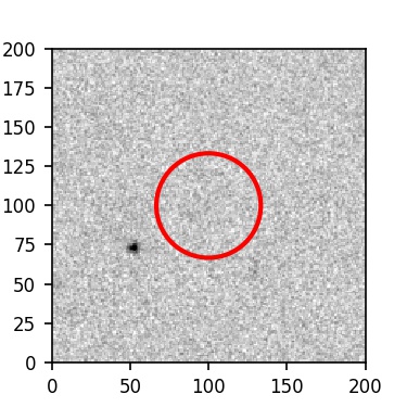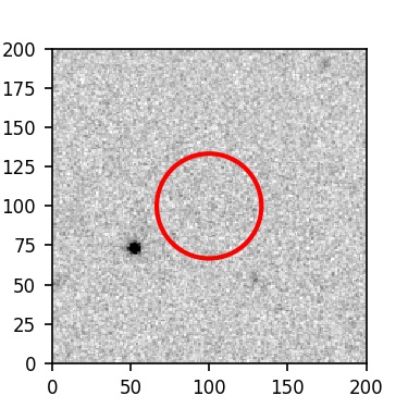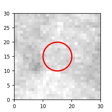 The red circle in the various panels is 1" in radius. The images are 6"x6".