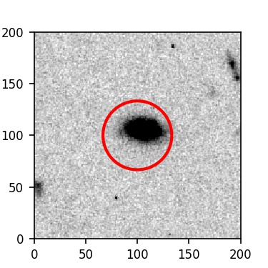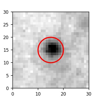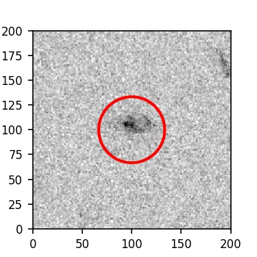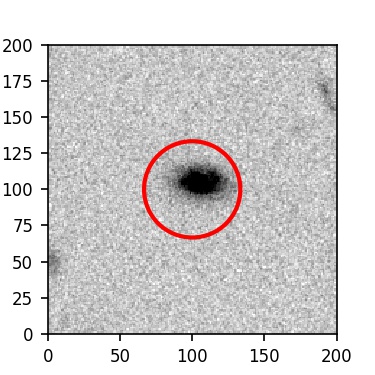 The red circle in the various panels is 1" in radius. The images are 6"x6".