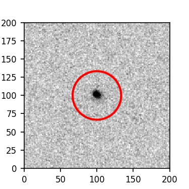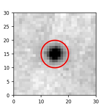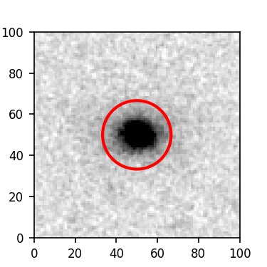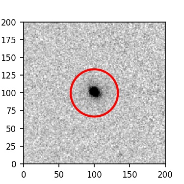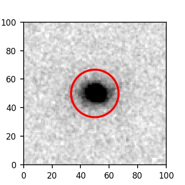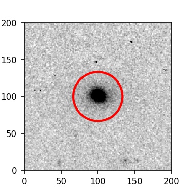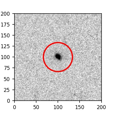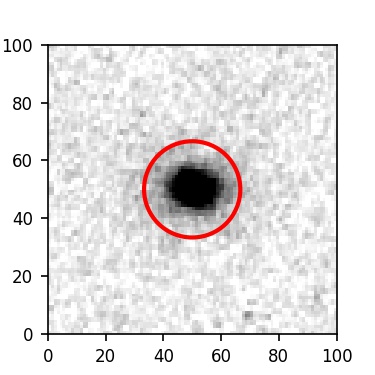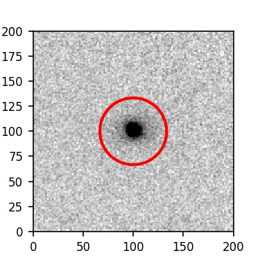 The red circle in the various panels is 1" in radius. The images are 6"x6".
