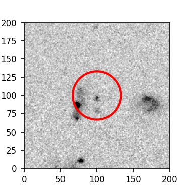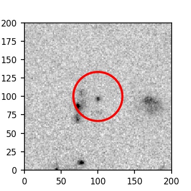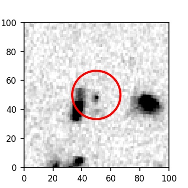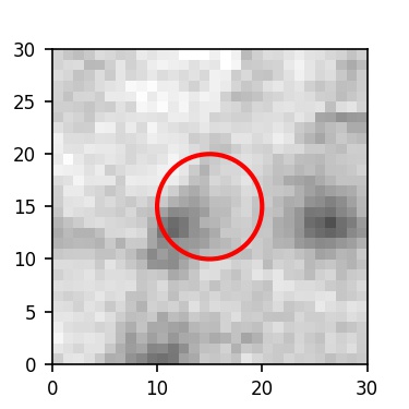 The red circle in the various panels is 1" in radius. The images are 6"x6".