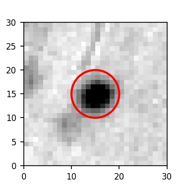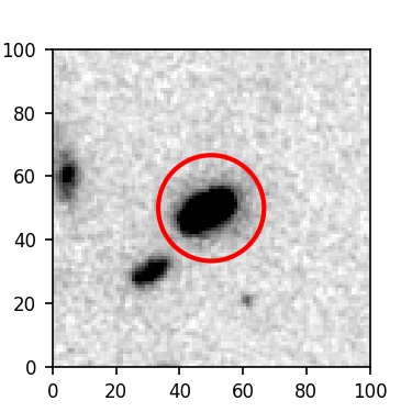 The red circle in the various panels is 1" in radius. The images are 6"x6".