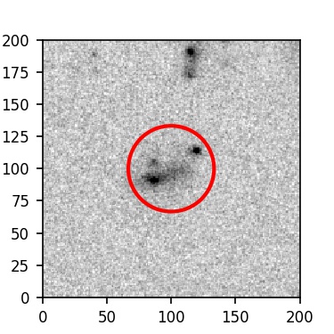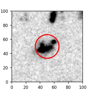 The red circle in the various panels is 1" in radius. The images are 6"x6".