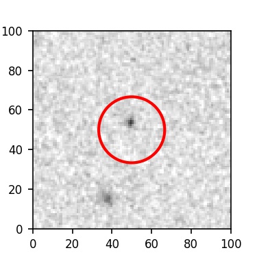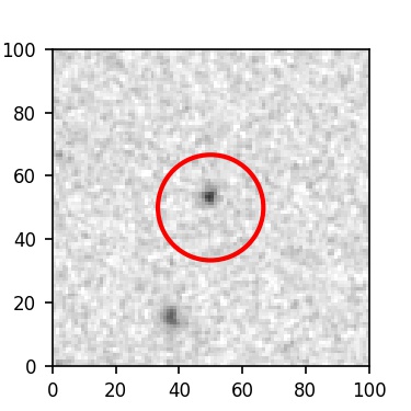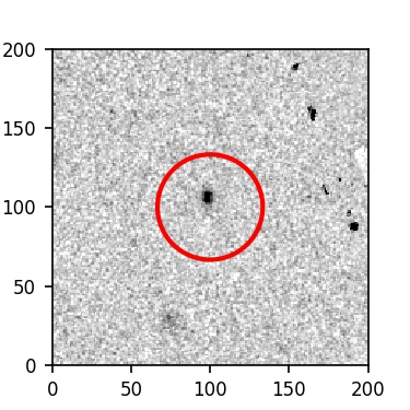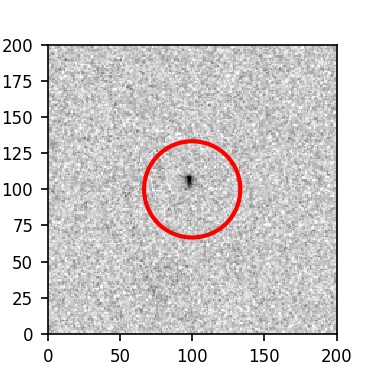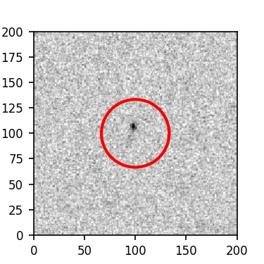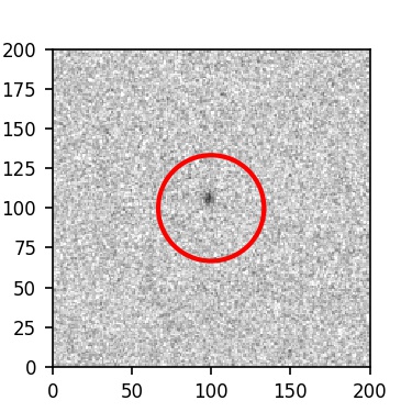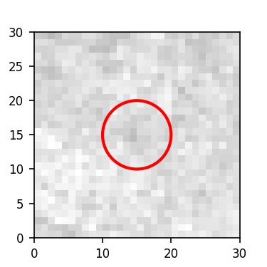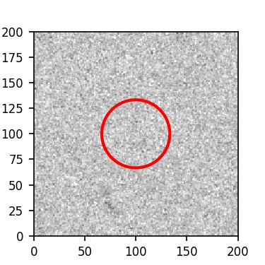The red circle in the various panels is 1" in radius. The images are 6"x6".