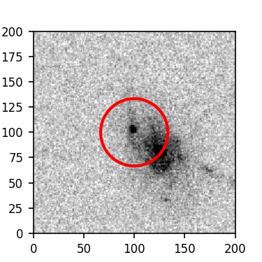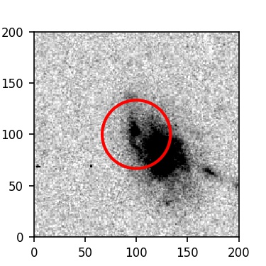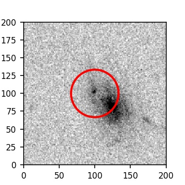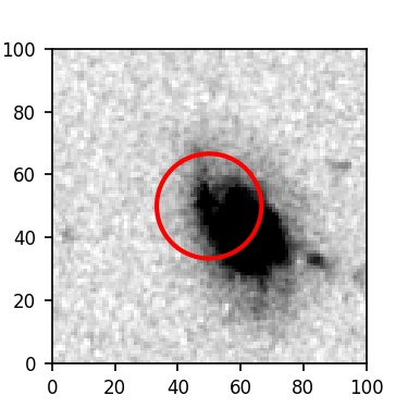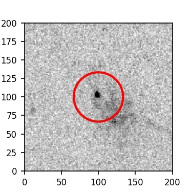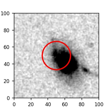 The red circle in the various panels is 1" in radius. The images are 6"x6".