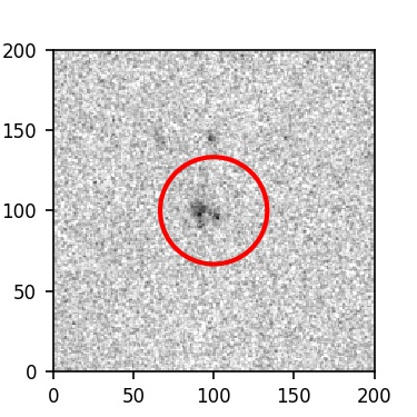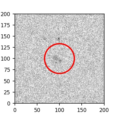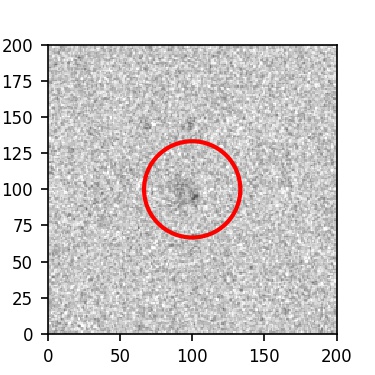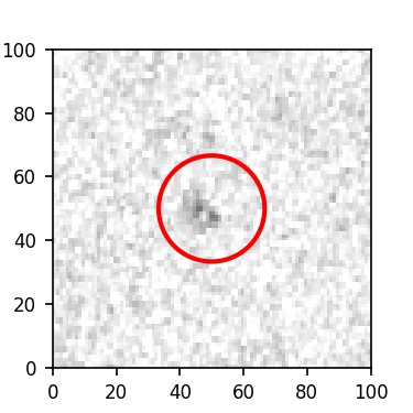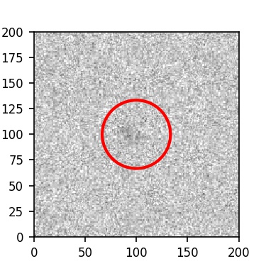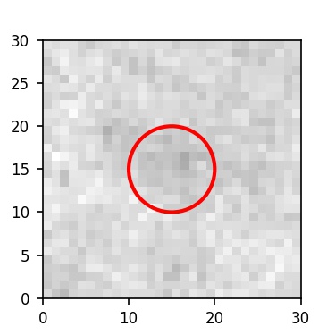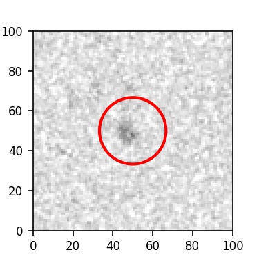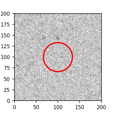 The red circle in the various panels is 1" in radius. The images are 6"x6".
