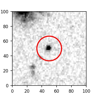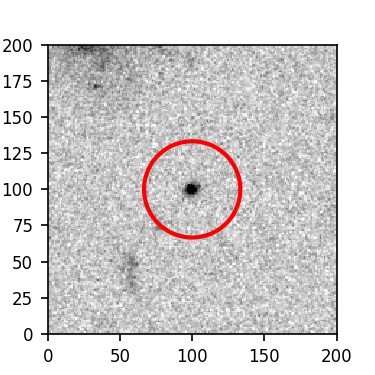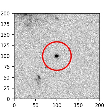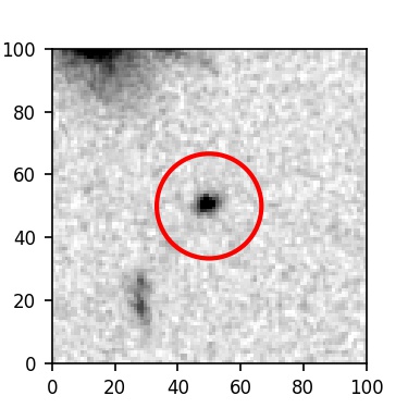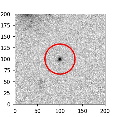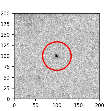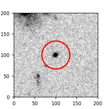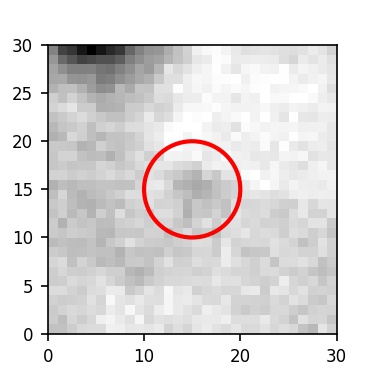 The red circle in the various panels is 1" in radius. The images are 6"x6".