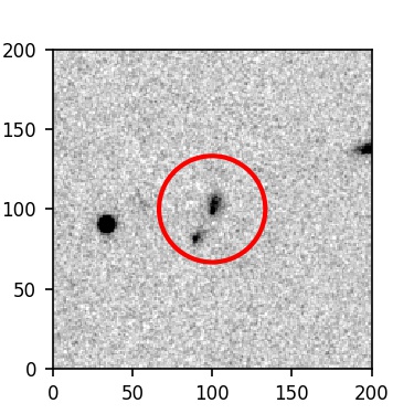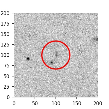 The red circle in the various panels is 1" in radius. The images are 6"x6".