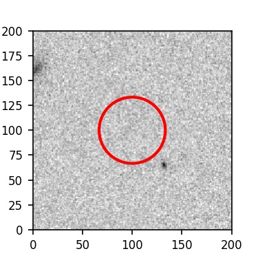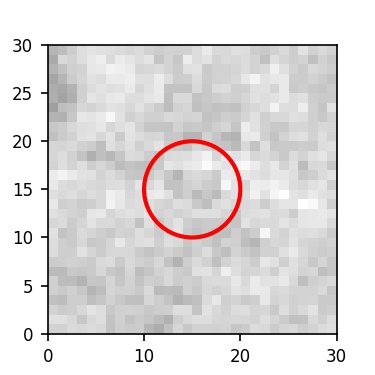 The red circle in the various panels is 1" in radius. The images are 6"x6".