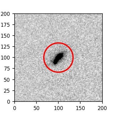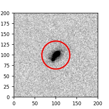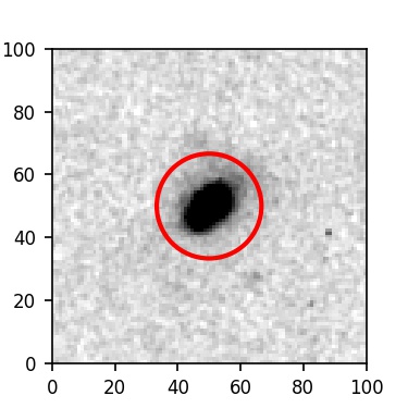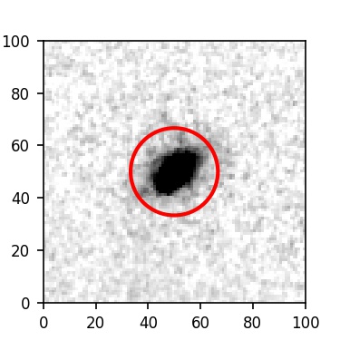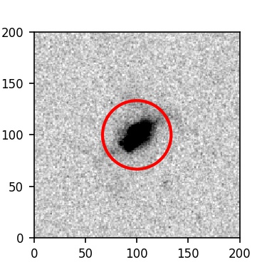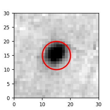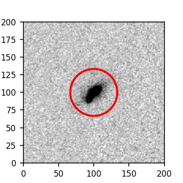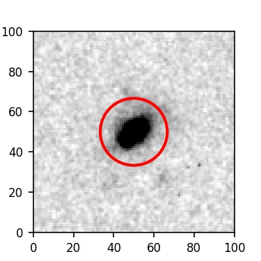 The red circle in the various panels is 1" in radius. The images are 6"x6".