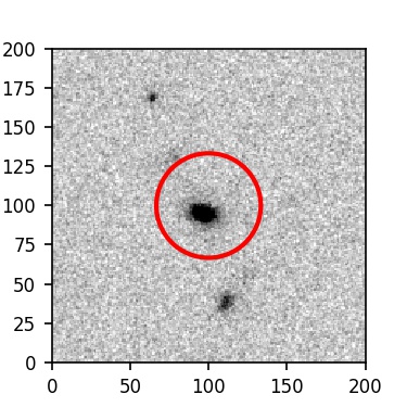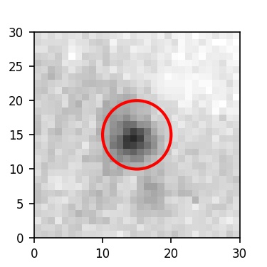 The red circle in the various panels is 1" in radius. The images are 6"x6".