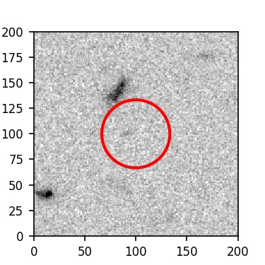 The red circle in the various panels is 1" in radius. The images are 6"x6".