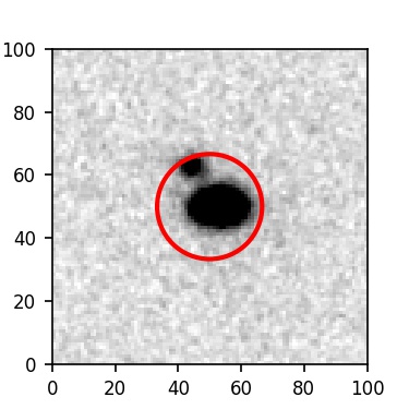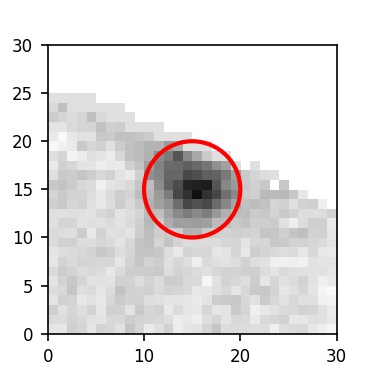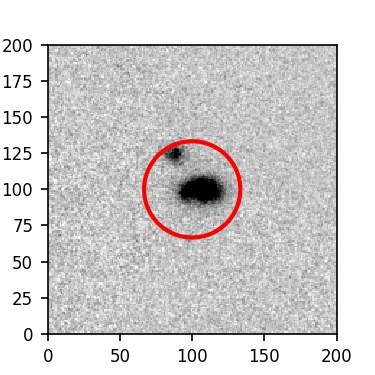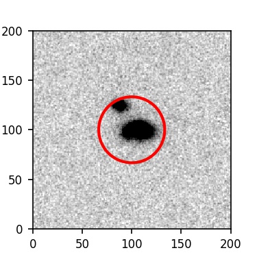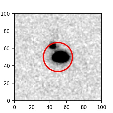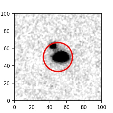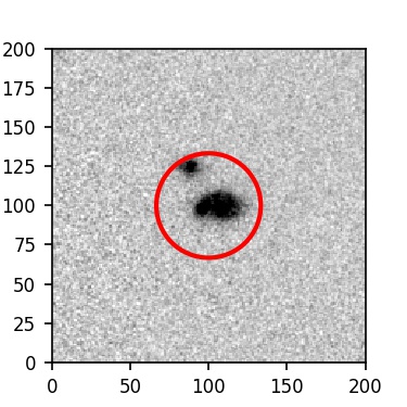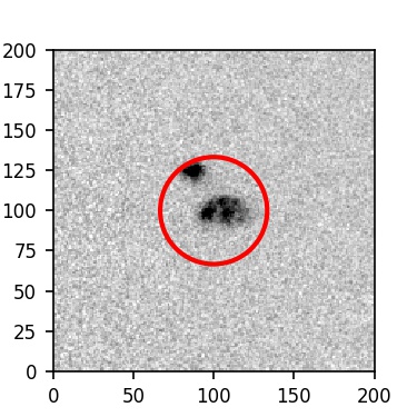 The red circle in the various panels is 1" in radius. The images are 6"x6".