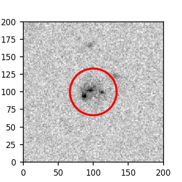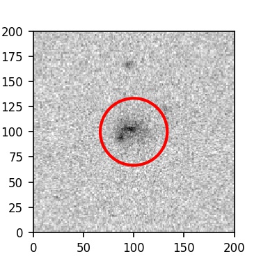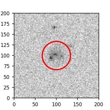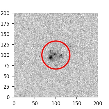 The red circle in the various panels is 1" in radius. The images are 6"x6".