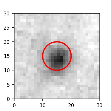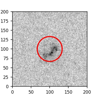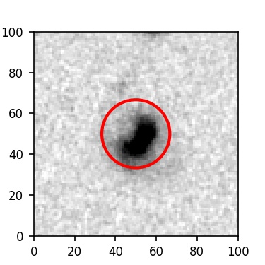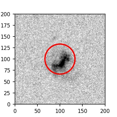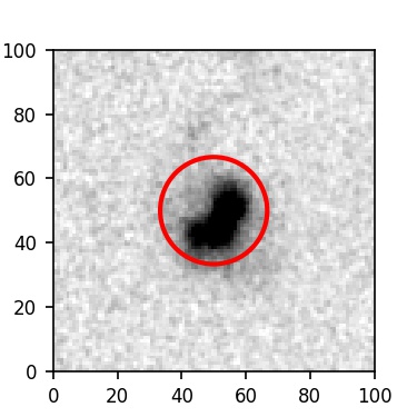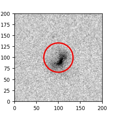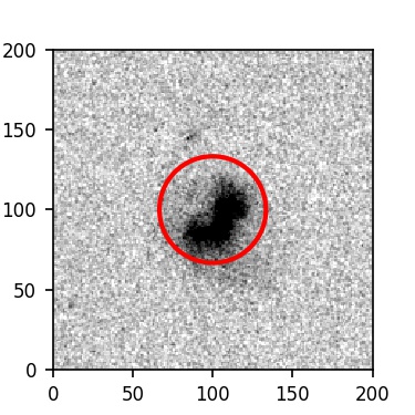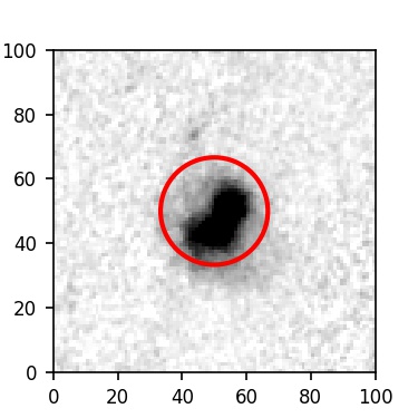 The red circle in the various panels is 1" in radius. The images are 6"x6".