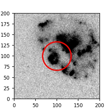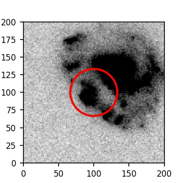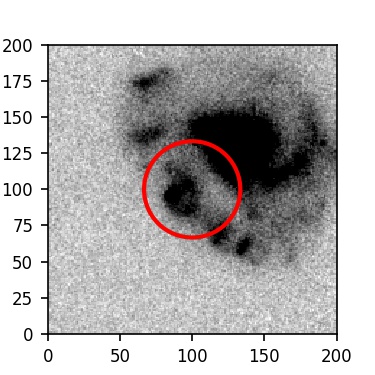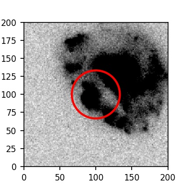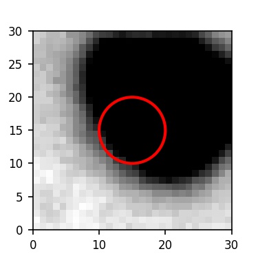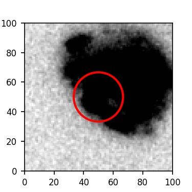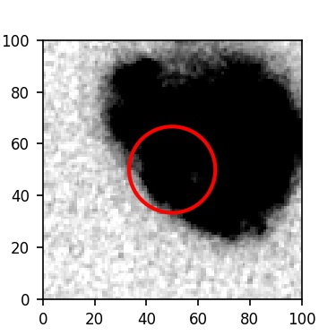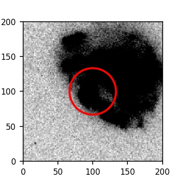 The red circle in the various panels is 1" in radius. The images are 6"x6".