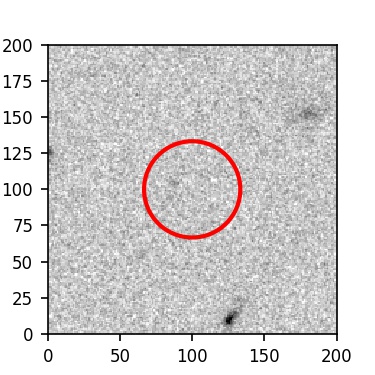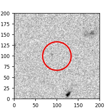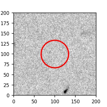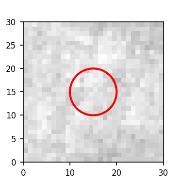 The red circle in the various panels is 1" in radius. The images are 6"x6".