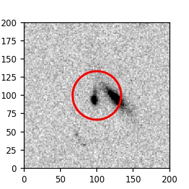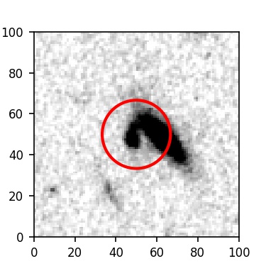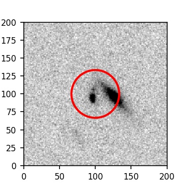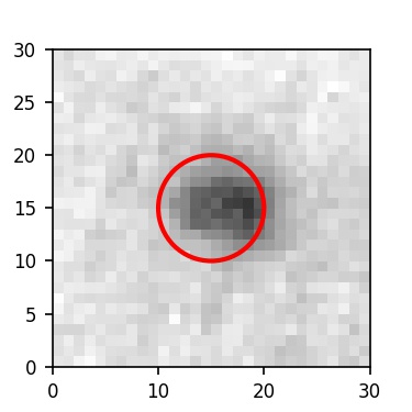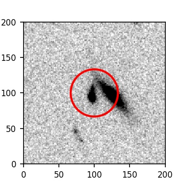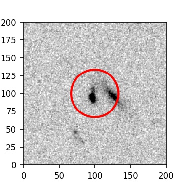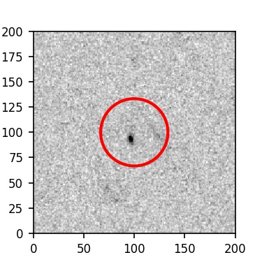 The red circle in the various panels is 1" in radius. The images are 6"x6".