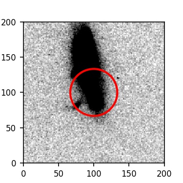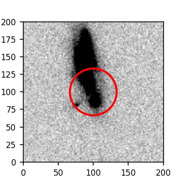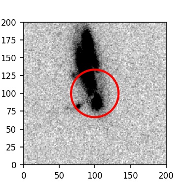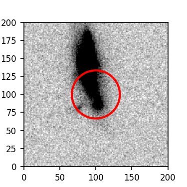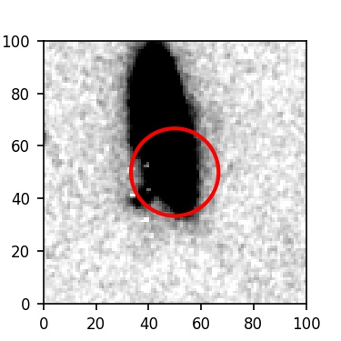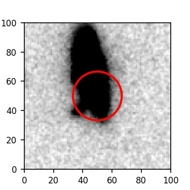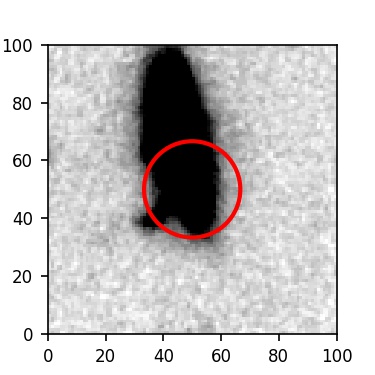 The red circle in the various panels is 1" in radius. The images are 6"x6".