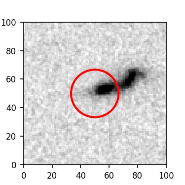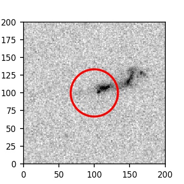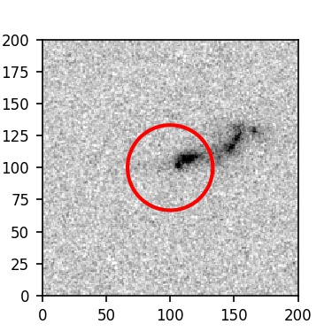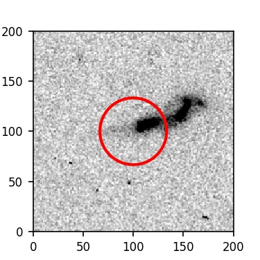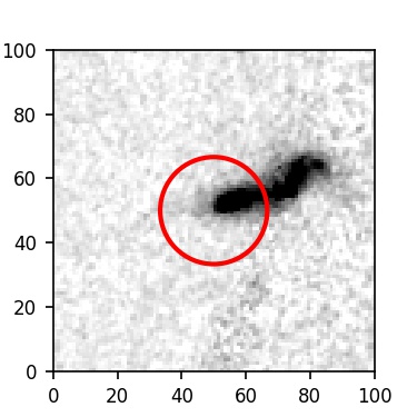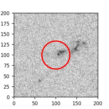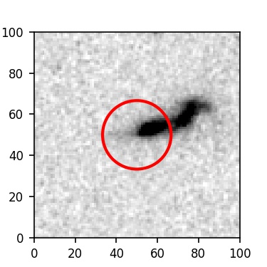 The red circle in the various panels is 1" in radius. The images are 6"x6".