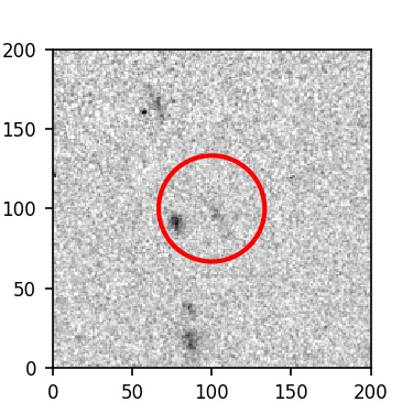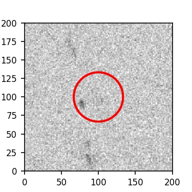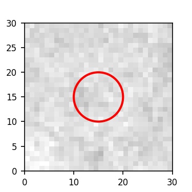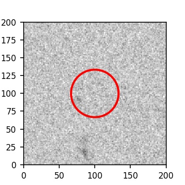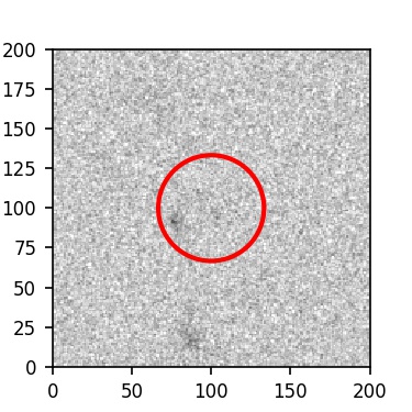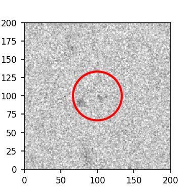 The red circle in the various panels is 1" in radius. The images are 6"x6".