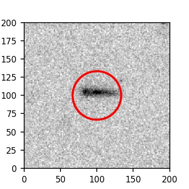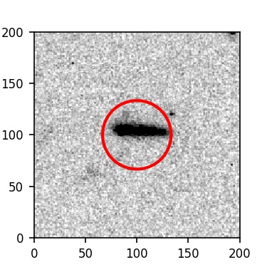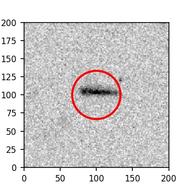 The red circle in the various panels is 1" in radius. The images are 6"x6".