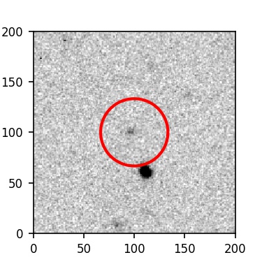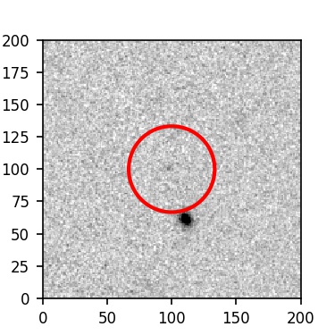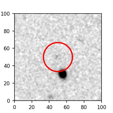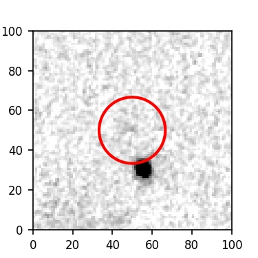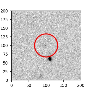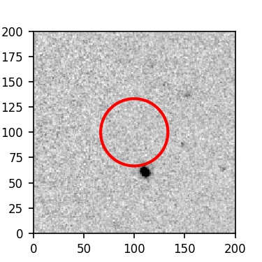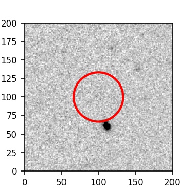 The red circle in the various panels is 1" in radius. The images are 6"x6".