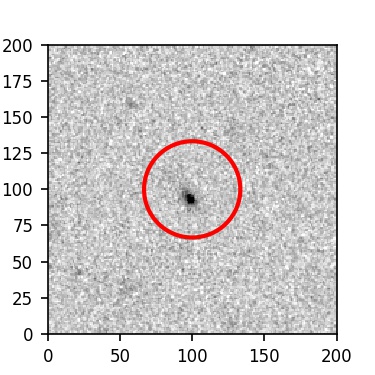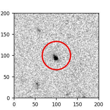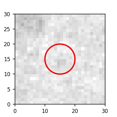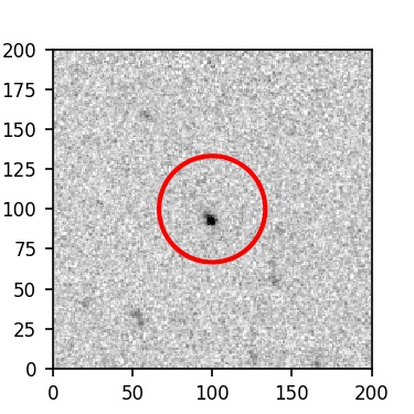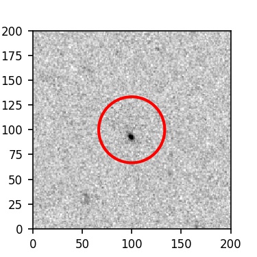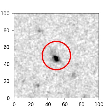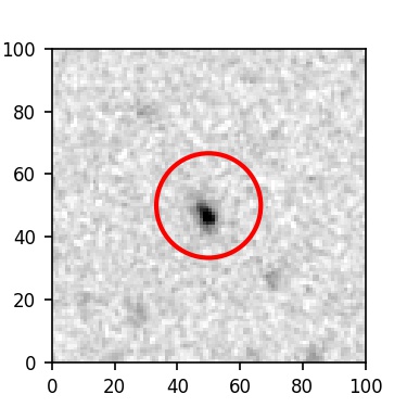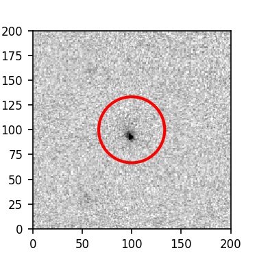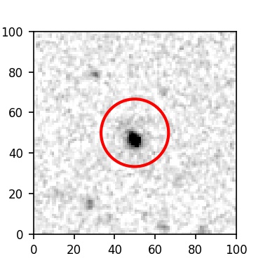 The red circle in the various panels is 1" in radius. The images are 6"x6".