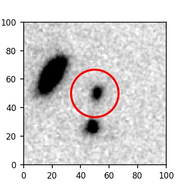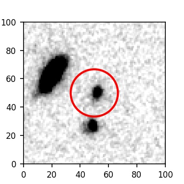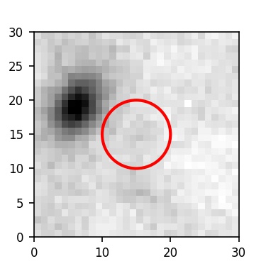 The red circle in the various panels is 1" in radius. The images are 6"x6".