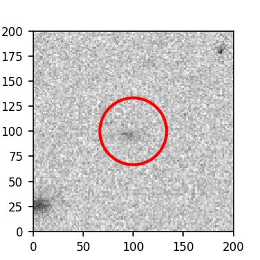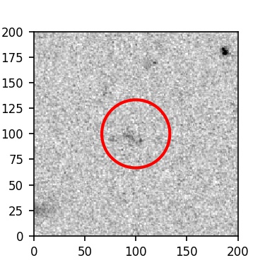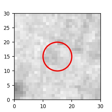 The red circle in the various panels is 1" in radius. The images are 6"x6".