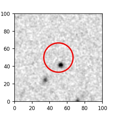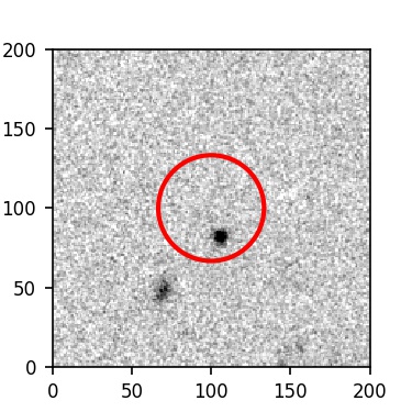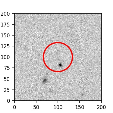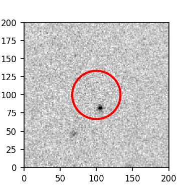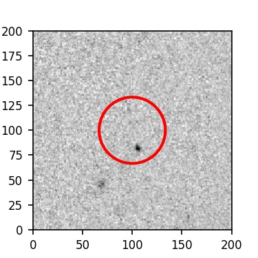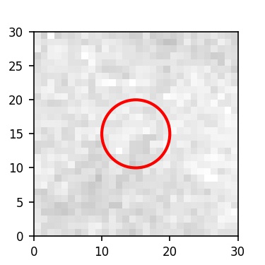 The red circle in the various panels is 1" in radius. The images are 6"x6".