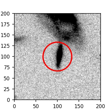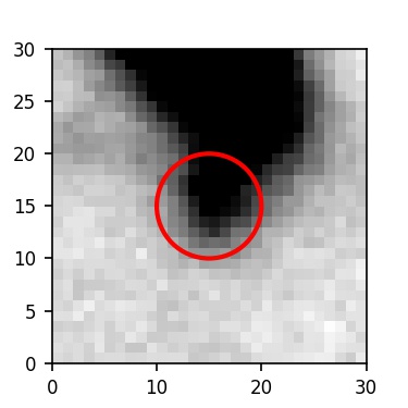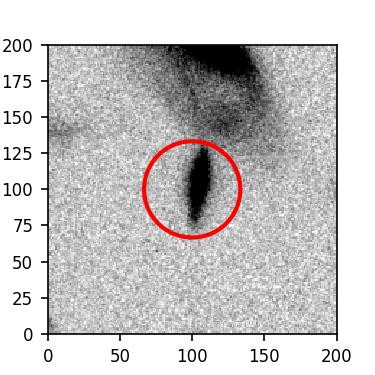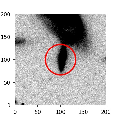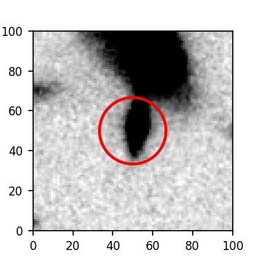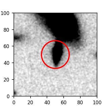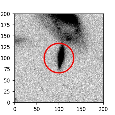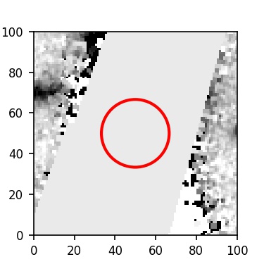The red circle in the various panels is 1" in radius. The images are 6"x6".
