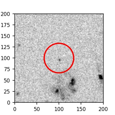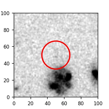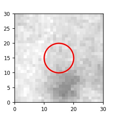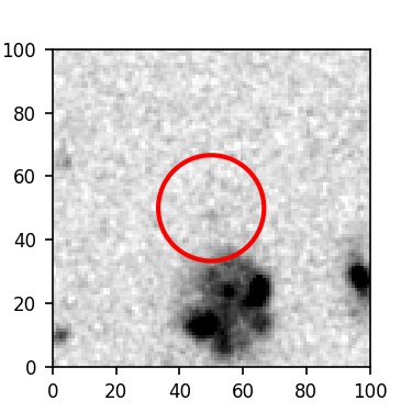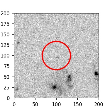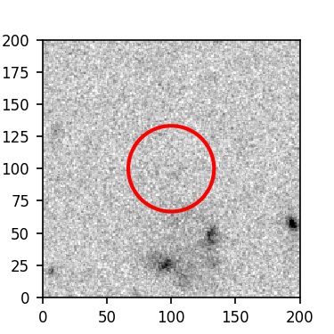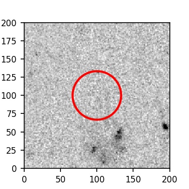 The red circle in the various panels is 1" in radius. The images are 6"x6".
