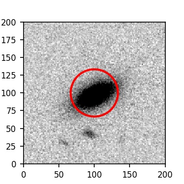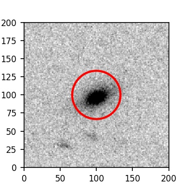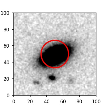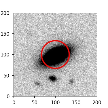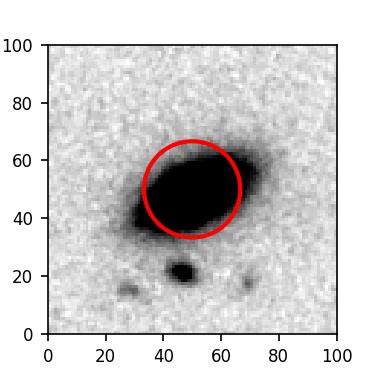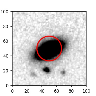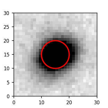 The red circle in the various panels is 1" in radius. The images are 6"x6".