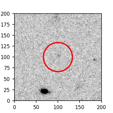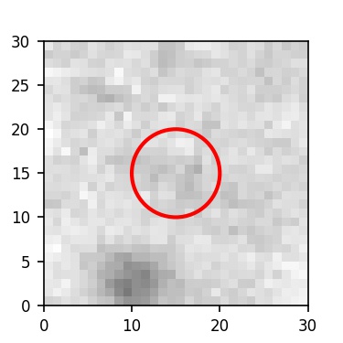 The red circle in the various panels is 1" in radius. The images are 6"x6".