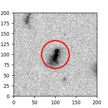 The red circle in the various panels is 1" in radius. The images are 6"x6".