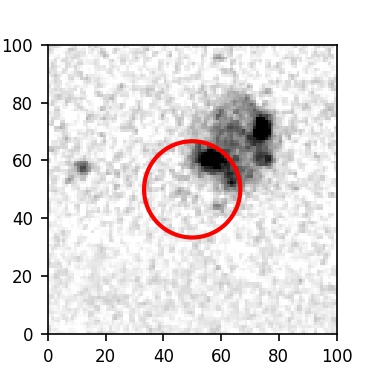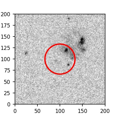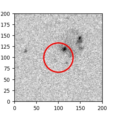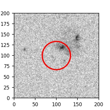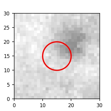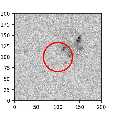 The red circle in the various panels is 1" in radius. The images are 6"x6".