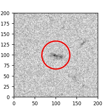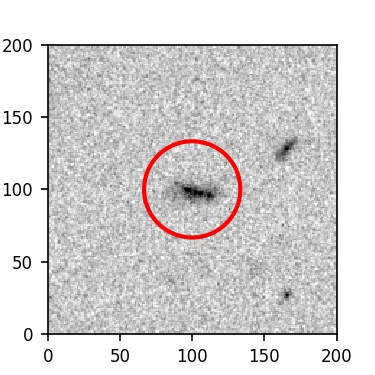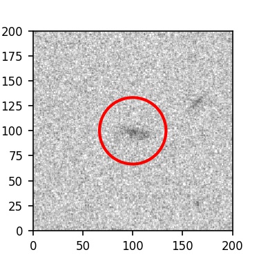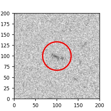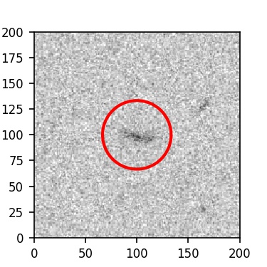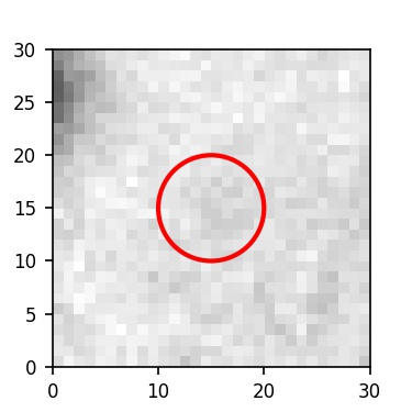 The red circle in the various panels is 1" in radius. The images are 6"x6".