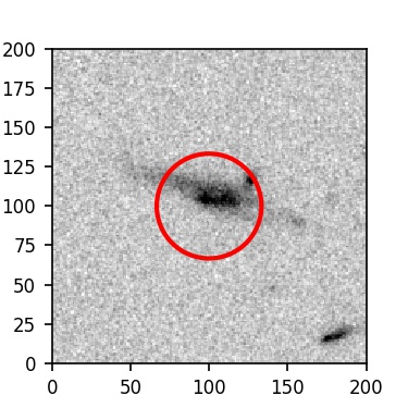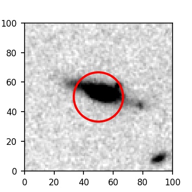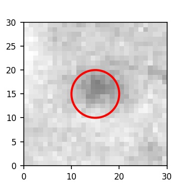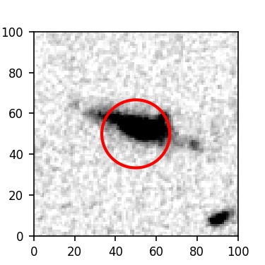 The red circle in the various panels is 1" in radius. The images are 6"x6".