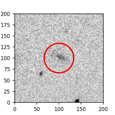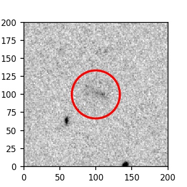 The red circle in the various panels is 1" in radius. The images are 6"x6".