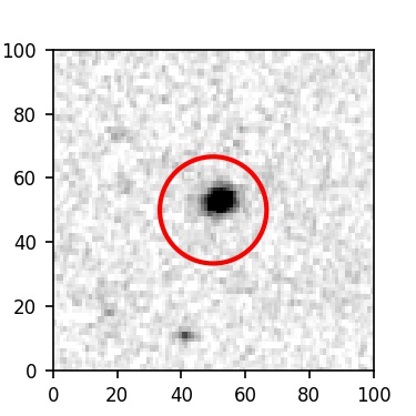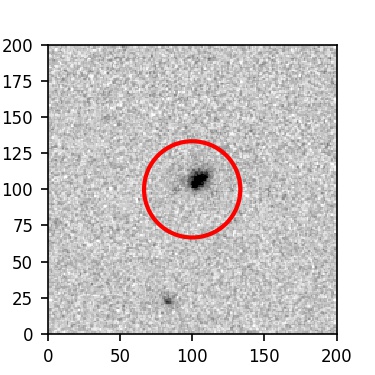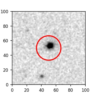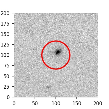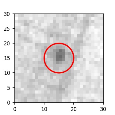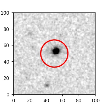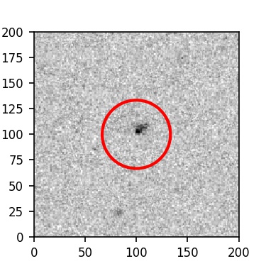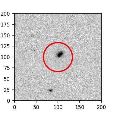 The red circle in the various panels is 1" in radius. The images are 6"x6".