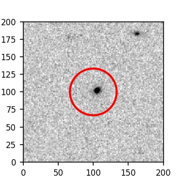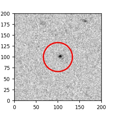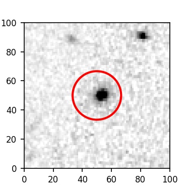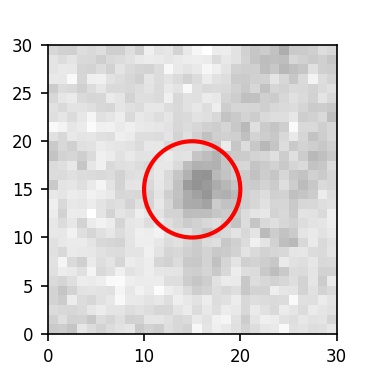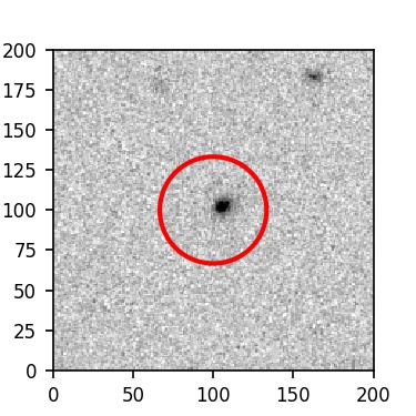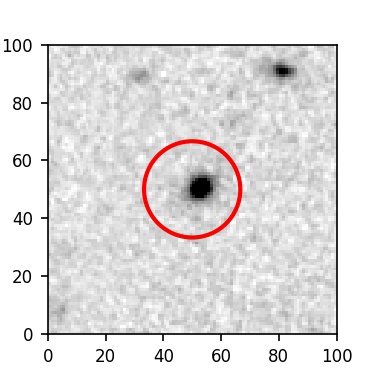 The red circle in the various panels is 1" in radius. The images are 6"x6".