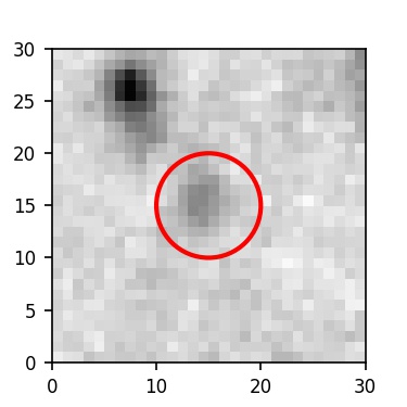 The red circle in the various panels is 1" in radius. The images are 6"x6".