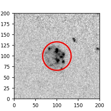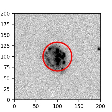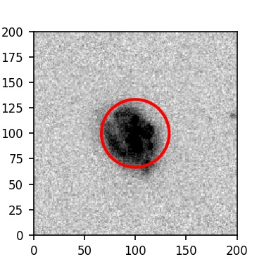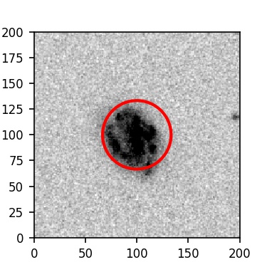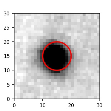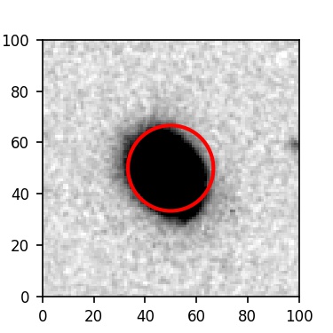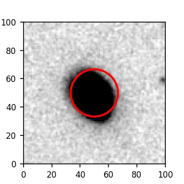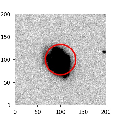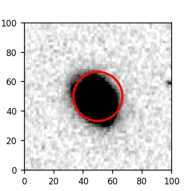 The red circle in the various panels is 1" in radius. The images are 6"x6".
