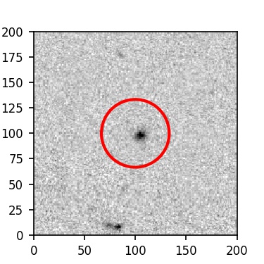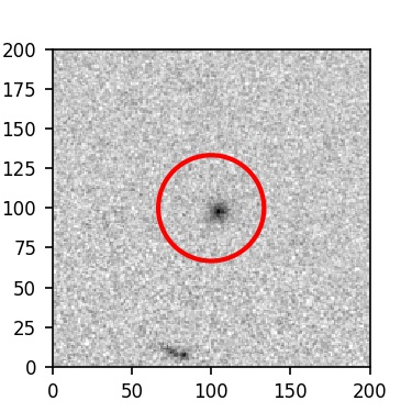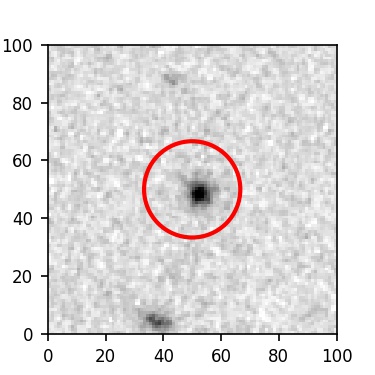 The red circle in the various panels is 1" in radius. The images are 6"x6".
