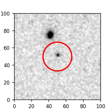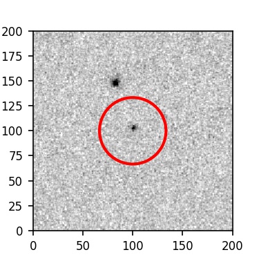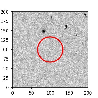 The red circle in the various panels is 1" in radius. The images are 6"x6".