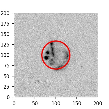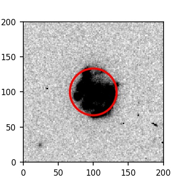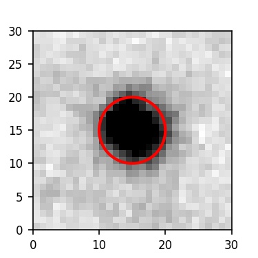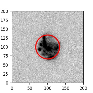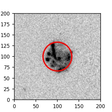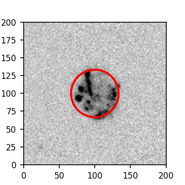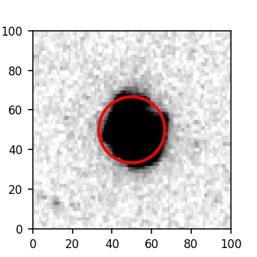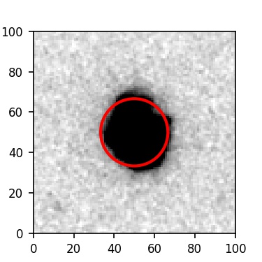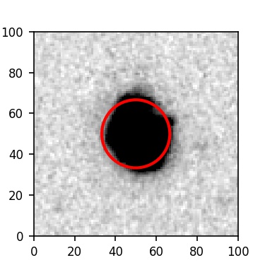 The red circle in the various panels is 1" in radius. The images are 6"x6".